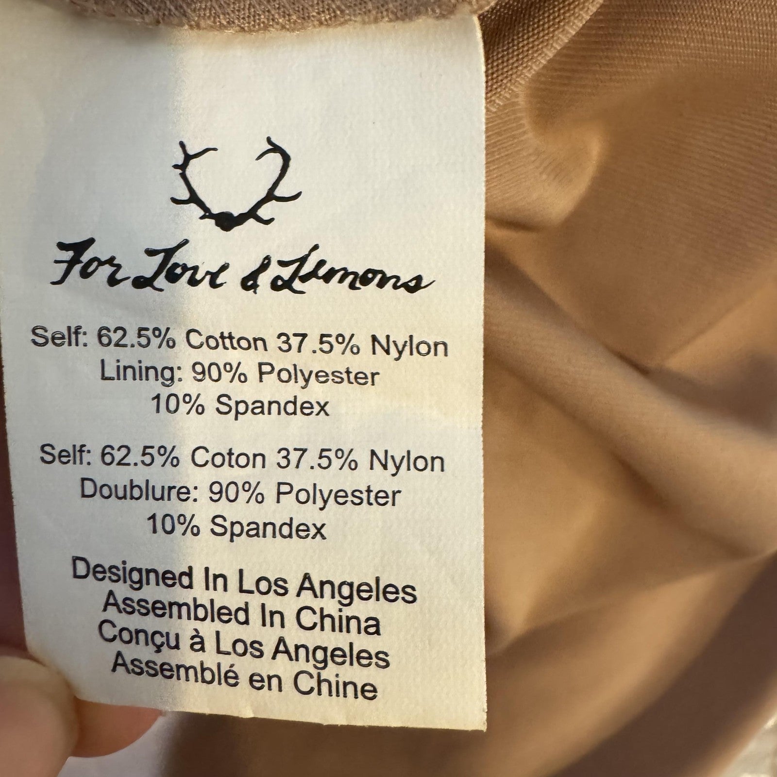 Materials: Self 62.5% cotton, 37.5% nylon; Lining 90% polyester, 10% spandex