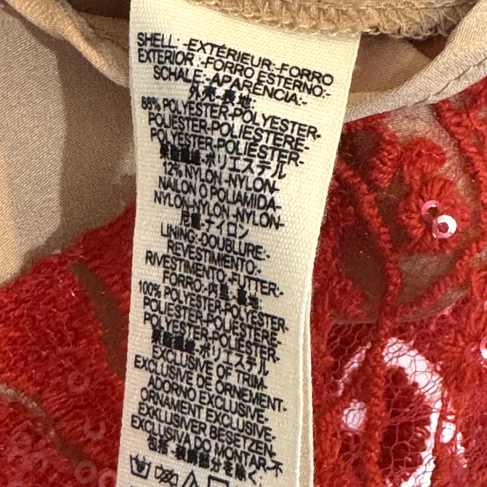 Design details: Embroidered lace with sequins; sheer mesh look with nude lining; elegant, dressy party piece