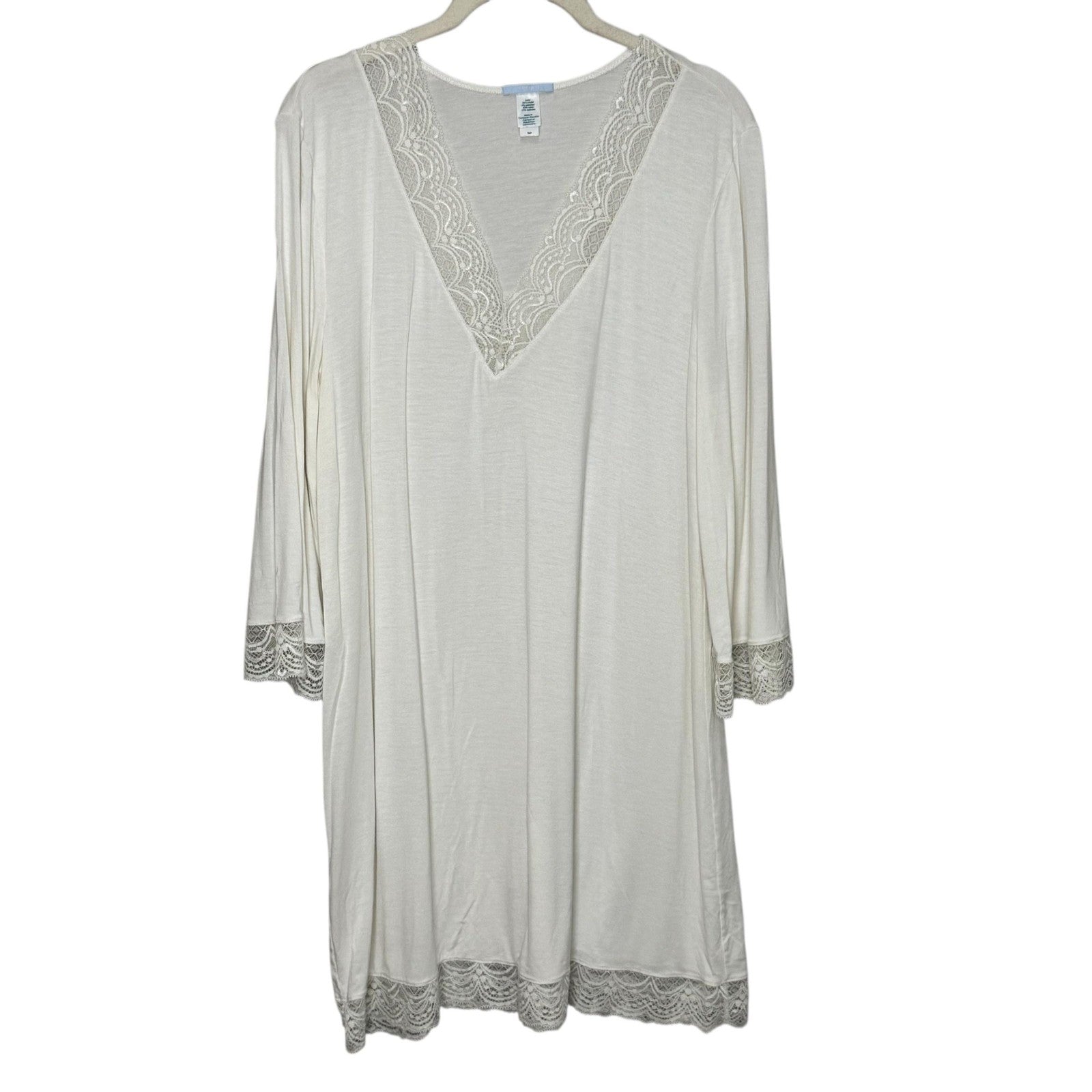Eberjey Nightgown Womens Small Ivory Lace Trim V Neck 3/4 Sleeve Sleep