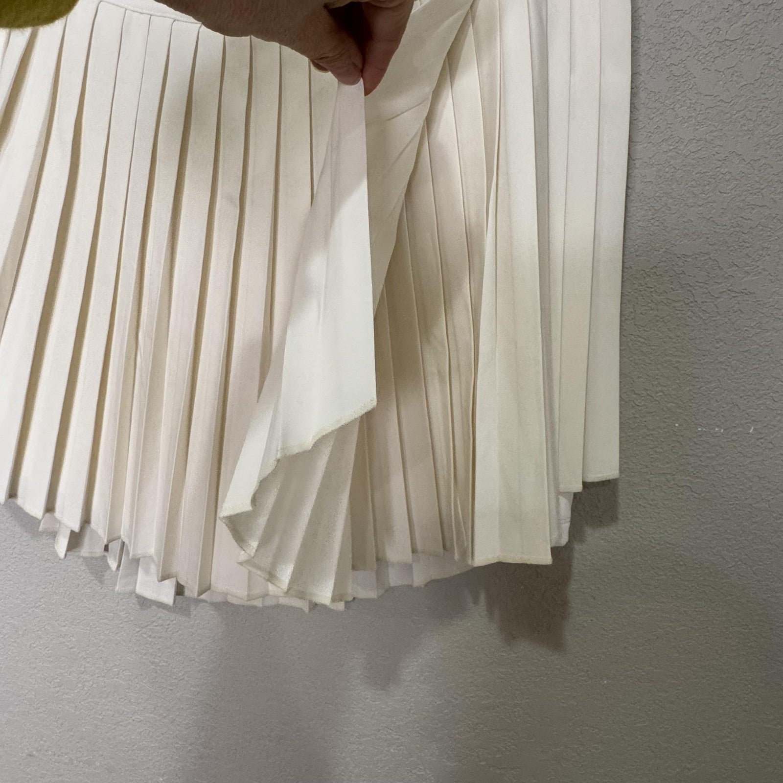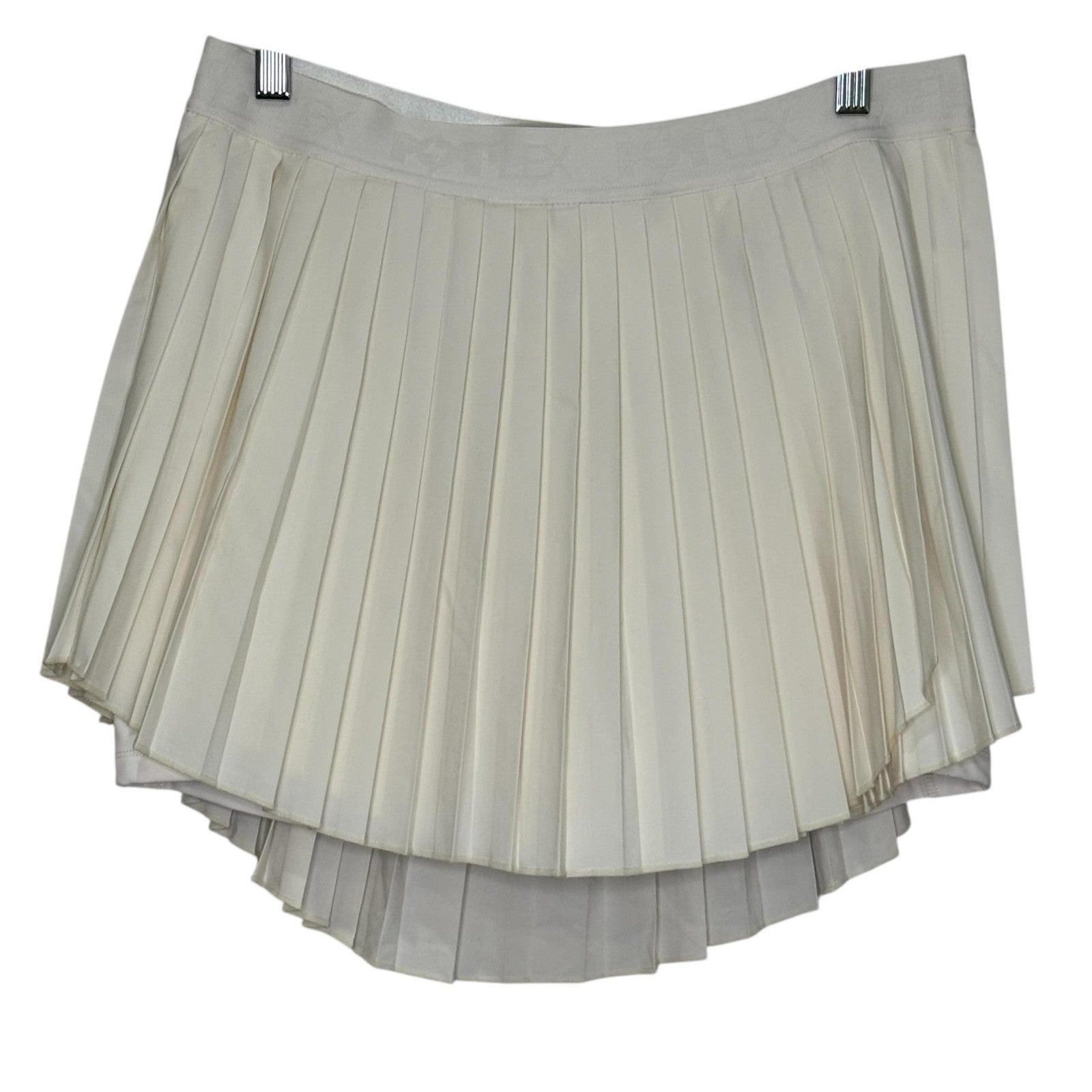 Features: High waist; crisp pleats; built-in inner shorts; side pocket for tennis ball/phone; stretchy performance fabric; high-low hem (longer in back)